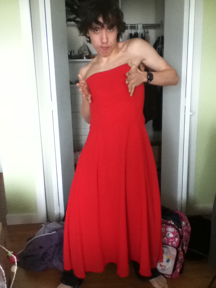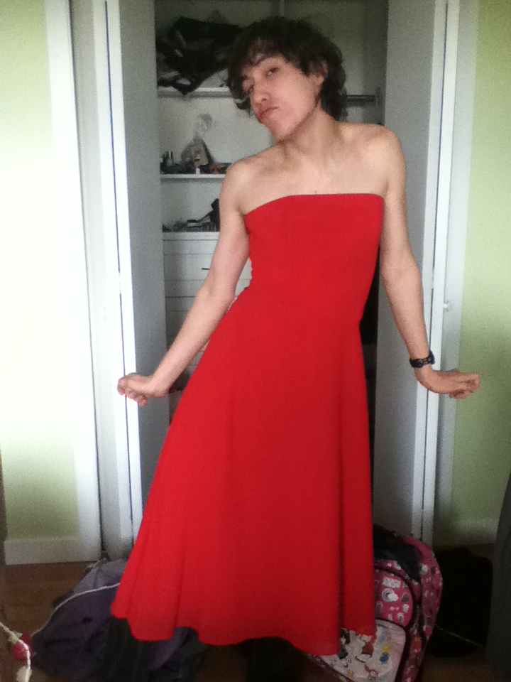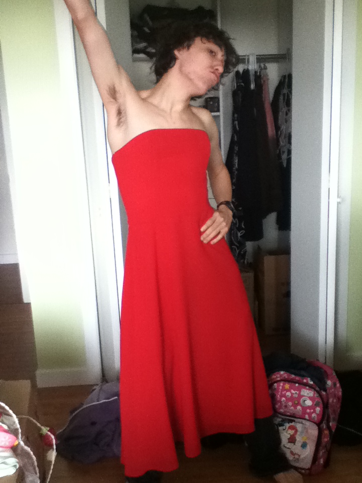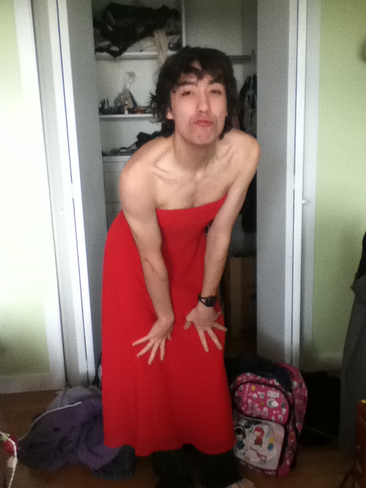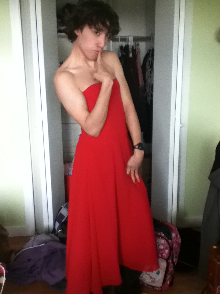 I WAS TRYING ON A NEW DRESS WHEN MY CAMERA FELL AND TOOK FIVE PICTURES OF ME I AM NOT A MODEL