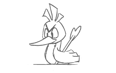 a good way to do 'flowy' animation is to first create a flowing line in the way you'd want the object to move, and you can tween it up or down depending on the direction you want it to flow. you can then go over it on another layer with the object loosely following the flowing movement of the line, while keeping in mind that there shoudl be follow-through where there needs to be. i think the head and the leek (?) are fine, although for his wing i don't think it actually needs to move a whole lot since duck wings tend to actually stay fairly still. there could maybe be a little motion on those nubbed feathers but i wouldn't overdo it.